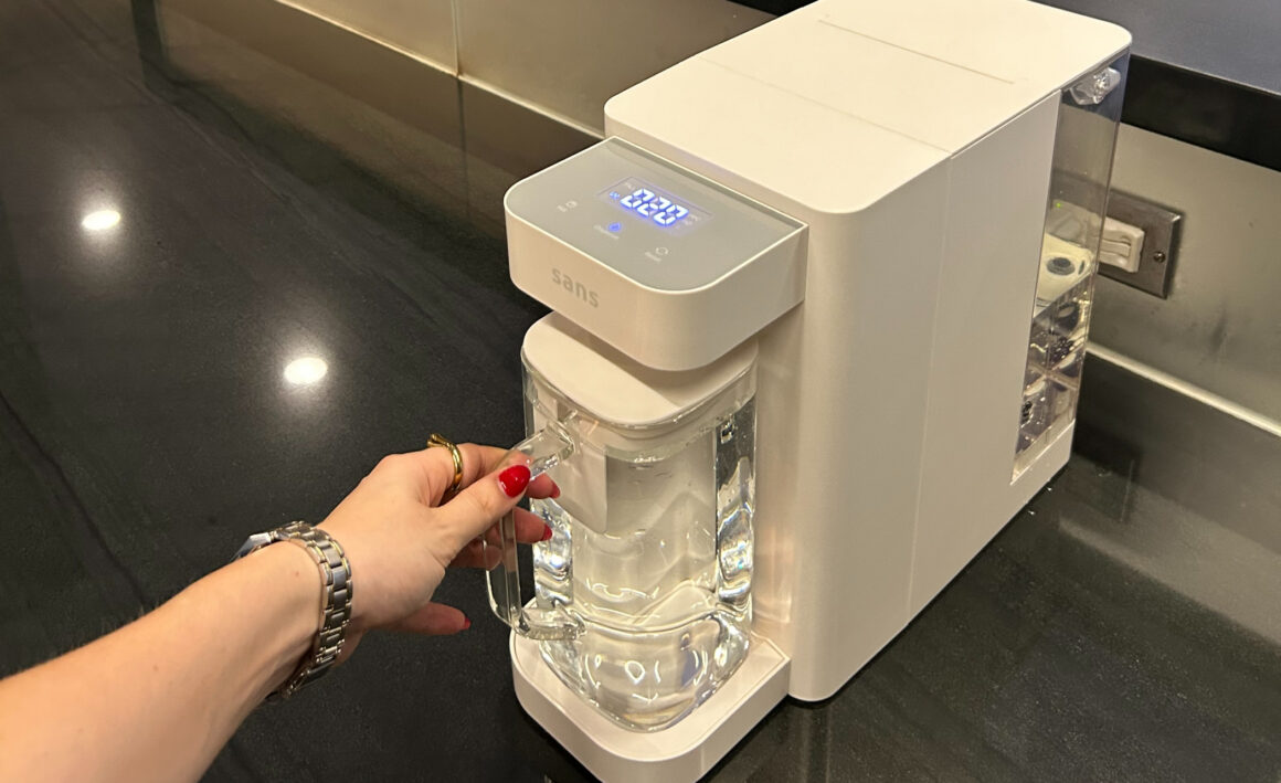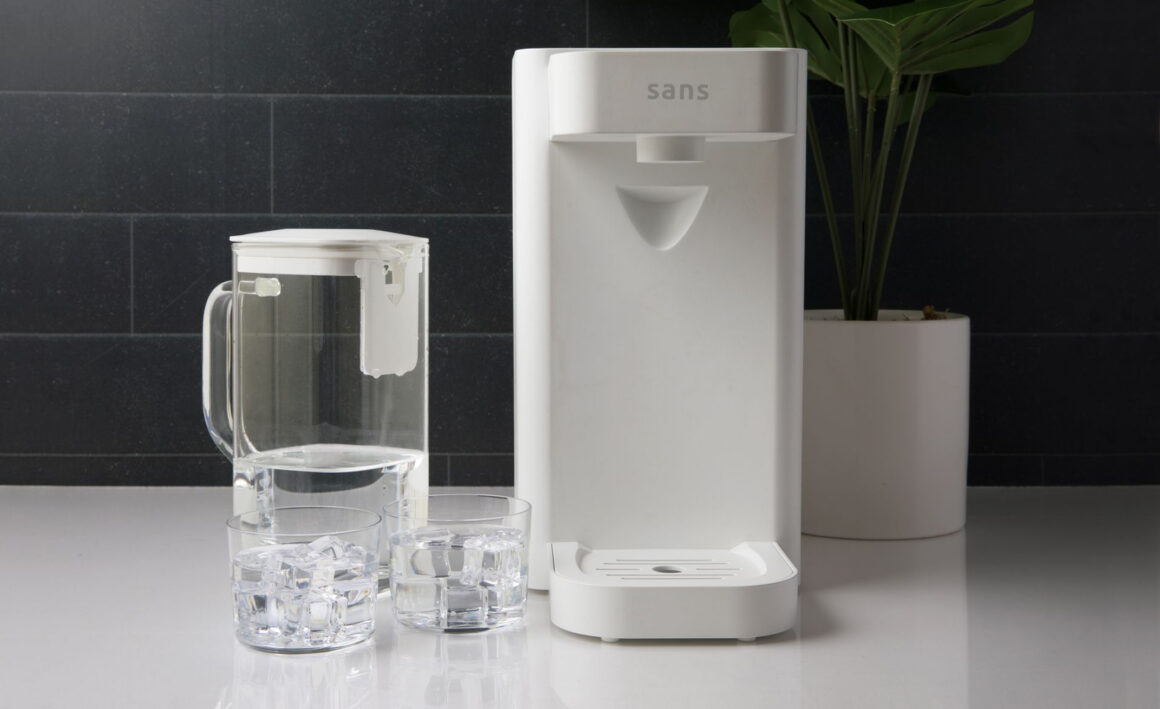- Auto-Fill Glass Pitcher: Instead of plastic containers, Sans dispenses purified water directly into a glass pitcher.